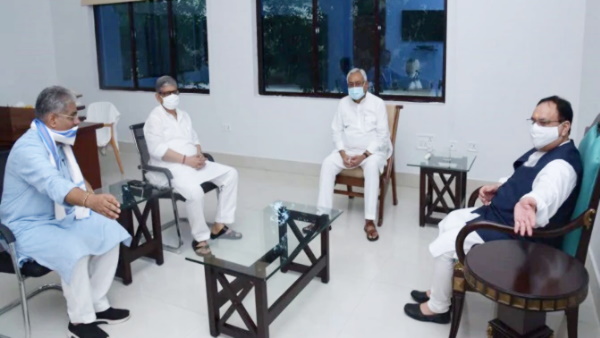 इस बैठक में जेपी नड्डा और नीतीश कुमार के अलावा डिप्टी सीएम सुशील मोदी, महाराष्ट्र के पूर्व मुख्यमंत्री देवेंद्र फडणवीस और बीजेपी बिहार के प्रभारी भूपेंद्र यादव भी मौजूद रहे। मीडिया रिपोर्ट के मुताबिक अपने बिहार दौरे पर बीजेपी अध्यक्ष जेपी नड्डा पार्टी दफ्तर में 'आत्मनिर्भर बिहार' अभियान की शुरूआत करेंगे। यहां से नड्डा दरभंगा और मुजफ्फरपुर भी जाएंगे।बता दें कि वोटिंग से पहले बीजेपी और जेडीयू में सीटों की संख्या को लेकर सहमती बनेगी उसके बाद यह तय किया जाएगा कि कौन सा दल किस सीट से चुनाव लड़ेगा।
