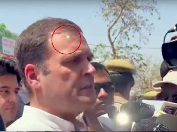 राहुल गांधी ने बुधवार को अमेठी में नामांकन दाखिल किया था। नामांकन और इससे रोड शो के दौरान राहुल गांधी के साथ उनके परिवार के लोग भी शामिल रहे थे। नामांकन के बाद उनके पत्रकारों से बात करते समय का एक वीडियो सामने आया है जिसमें एक हरे रंग की लाइट उनके माथे पर दिख रही है। ये किसी लेजर लाइट जैसी है। इसको लेकर कांग्रेस की ओर से गृह मंत्रालय को चिट्ठी लिखी गई है। चिट्ठी में कहा गया है कि इस लेजर लाइट के स्नीपर रायफल की होने से इनकार नहीं किया जा सकता है। ऐसे में ये सुरक्षा में बड़ी सेंध है।