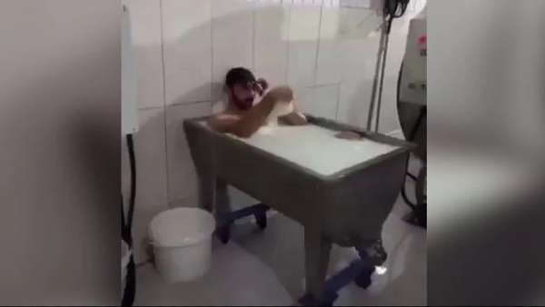 बता दें ये वीडियो तुर्की के एक डेयर प्लांट का है। जहां प्लांट बंद होने बाद वहां काम करने वाला वर्कर दूध से भरे एक कंटेनर में डुबकी लगाकर मग से स्नान करने लगा। स्नान करने वाले शख्स का उसके साथी वर्कर ने एक वीडियो शूट कर लिया। वर्कर के इस दूध में शाही स्नान का यह वीडियो फुटेज सोशल मीडिया पर फैल गया और जल्दी ही विभिन्न प्लेटफार्मों में फैल गया। हुर्रियत डेली न्यूज के अनुसार, वीडियो कोनी के केंद्रीय अनातोलियन प्रांत में एक डेयरी प्लांट में रिकॉर्ड किया गया था।