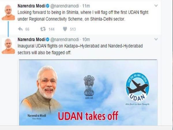 शिमला में बूंदा-बांदी के बावजूद पीएम मोदी ने खुद ट्वीट कर ये हौसला देते हुए लिखा है कि वो सवा ग्यारह बजे शिमला से ही 'उड़ान' का शुभारंभ करेंगे।