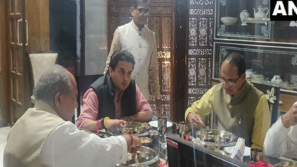 शिवराज सिंह चौहान, ज्योतिरादित्य सिंधिया, नरेंद्र सिंह तोमर, बीजेपी प्रदेश अध्यक्ष वीडी शर्मा, नरोत्तम मिश्रा, यशोधरा राजे सिंधिया का डिनर टेबल पर आवभगत करने की कमान खुद शिवराज सिंह की पत्नी साधना सिंह ने संभाल रखी थी। डिनर टेबल पर शिवराज सिंह चौहान, सिंधिया समेत तमाम नेताओं ने सियासी बातचीत की और भरपेट खाने का आनंद उठाया। वहीं ज्योतिरादित्य सिंधिया और विधायकों के इस्तीफे की वजह से संकट में आई कांग्रेस सरकार के मुख्यमंत्री कमलनाथ आज राज्यपाल से मुलाकात कर सकते हैं।
