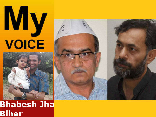 इस पूर मामले में बिहार के रहने वाले भावेश झा का कहना है कि योगेन्द्र यादव और प्रशांत भूषण बहुत कुशल व्यवहार के लोग हैं। भावेश का कहना है योगेन्द्र यादव और प्रशांत भूषण ने पार्टी की भलाई के लिए कुछ बातें रखी जो केजरीवाल को पसंद नहीं थी इसलिए उन्हें पार्टी से बाहर का रास्ता दिखा दिया गया।