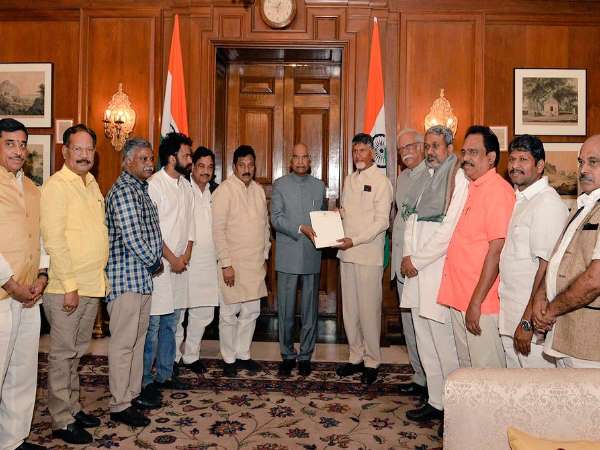 नई दिल्ली। मुख्यमंत्री एन चंद्रबाबू नायडू के नेतृत्व में एक प्रतिनिधिमंडल ने आंध्र प्रदेश को विशेष राज्य का दर्जा (आंद्रप्रदेश पुनर्गठन अधिनियम, 2014) दिए जाने की मांग को लेकर राष्ट्रपति राम नाथ कोविंद को संसद में किए आश्वासनों के कार्यान्वयन की स्थिति के बारे में एक ज्ञाप सौंपा है। बता दें कि सोमवार को चंद्रबाबू नायडू इसी मांग को लेकर दिल्ली में ही एक दिन के भूख हड़ताल पर भी बैठे थे।