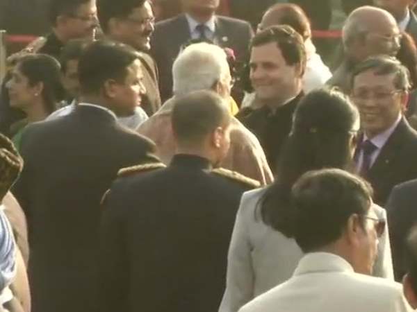 परेड के बाद मोदी और राहुल मुस्करा कर मिले। हालांकि राहुल को समारोह में पीछे जगह देने पर कांग्रेस नेता भाजपा पर लगातार हमलावर है। गणतंत्र दिवस समारोह में कांग्रेस अध्यक्ष राहुल गांधी को छठी लाइन में बैठाया गया। कांग्रेस प्रवक्ता रणदीप सुरजेवाला ने ट्वीट कर कहा कि राहुल गांधी को चौथी नहीं बल्कि छठी पंक्ति में बैठाया गया है, ये ओछी राजनीति है। टि्वटर पर शेयर की गई तस्वीरों में राहुल गांधी, गुलाम नबी आजाद के साथ बैठे दिख रहे हैं।