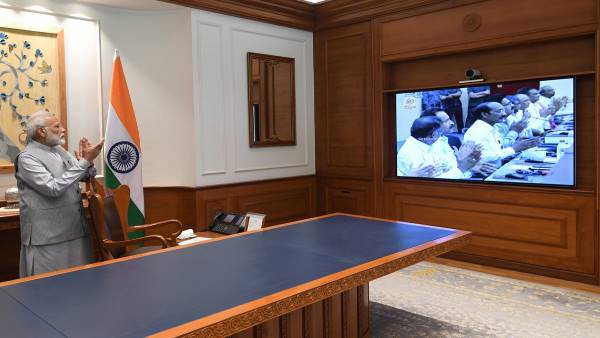 नई दिल्ली। इसरो ने सोमवार दोपहर 2.43 मिनट पर चंद्रयान-2 को सफलता पूर्वक लॉन्च कर दिया है। चंद्रयान-2 की लॉन्चिंग को प्रधानमंत्री नरेंद्र मोदी ने सीधा प्रसारण देखा। न्यूज एजेंसी एएनआई की ओर से एक वीडियो जारी किया गया है जिसमें प्रधानमंत्री नरेंद्र मोदी एक टक चंद्रयान-2 की लॉन्चिंग पर नजर लगाए हुए दिखाई दे रहे हैं। सफल लॉन्चिंग के बाद प्रधानमंत्री नरेंद्र मोदी ताली बजाते हुए भी नजर आ रहे हैं।
