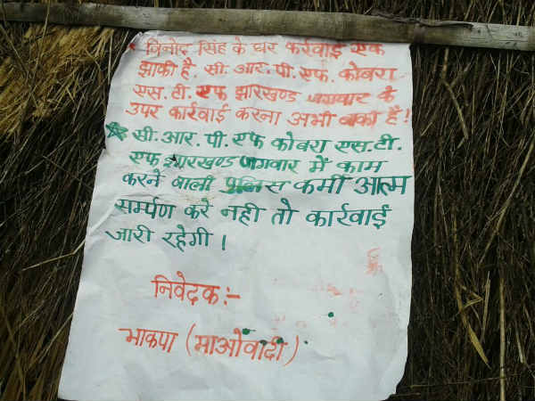 इस हमले के साथ ही नक्सलियों की ओर से धमकी भी दी गई है कि अगर झारखंड इलाके में काम करने वाली पुलिस ने उनके सामने आत्मसमर्पण नहीं किया तो फिर उन्हें इसी तरह का अंजाम भुगतने को तैयार रहना होगा।