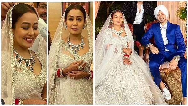 रिसेप्शन में व्हाइट प्रिंसेस लहंगे में दिखीं नेहा