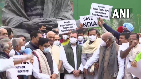 गौरतलब है कि शीतकालीन सत्र के पहले दिन ही 12 विपक्षी सांसदों को सदन से निलंबित कर दिया गया था। इसके बाद से विपक्ष लगातार लोकसभा और राज्यसभा में हंगामा कर रहा है। विपक्ष के नेता और राज्यसभा सांसद मल्लिकार्जुन खड़गे ने कहा, 'हम राज्यसभा के 12 विपक्षी सदस्यों का निलंबन रद्द करने की मांग कर रहे हैं। हम एक बैठक करेंगे और भविष्य की कार्रवाई तय करेंगे।' निलंबन के विरोध में विपक्षी सांसदों के बीच कांग्रेस सांसद राहुल गांधी भी नजर आए।