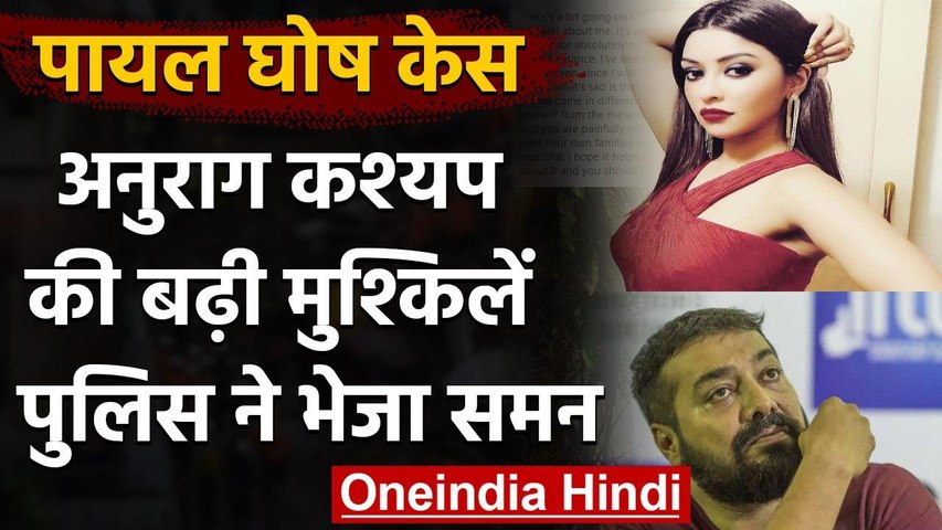मुंबई पुलिस ने फिल्म निर्देशक अनुराग कश्यप को पायल घोष के कथित उत्पीड़न मामले में समन किया और गुरुवार सुबह 11 बजे वर्सोवा पुलिस स्टेशन में उपस्थित होने को कहा है।