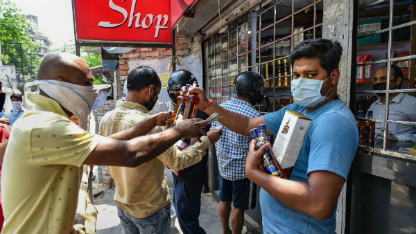 कर्नाटक के कोलार में लोगों ने शराब बिकने की खुशी में शराब की दुकान के बाहर जमकर पटाखे जलाए। एक व्यक्ति हाथ में लेकर पटाखे जला रहा है, वह शराब मिलने की खुशी में डांस भी करने लगता है। कुछ लोग तो शराब को हाथ में उपर उठाकर जीत का जश्न भी मनाते हुए दिखे। कुछ ऐसा ही हाल देश के तमाम इलाकों में देखने को मिला।