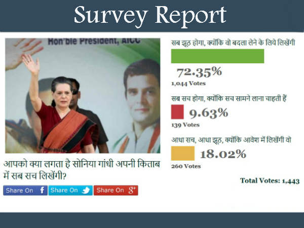 72 फीसदी लोगों ने कहा अपनी किताब में झूठ लिखेंगी सोनिया गांधी