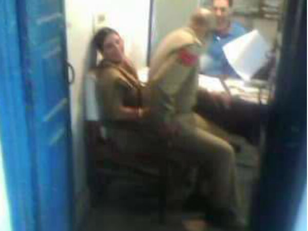 शर्मनाक: महिला कांस्टेबल की गोद में बैठ गया थाने का मुंशी, फोटो वायरल
