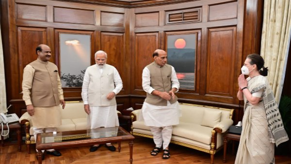 लोकसभा अध्यक्ष ओम बिरला के ट्वीटर हैडल से शेयर की तस्वीरों में कुछ बेहद ही खास हैं। एक तस्वीर ऐसी है जिसमें प्रधानमंत्री नरेंद्र मोदी, रक्षा मंत्री राजनाथ सिंह और कांग्रेस प्रमुख सोनिया गांधी हैं। जिसमें वे पीएम मोदी को वे अभिवादन कर रही हैं। पीएम के बगल रक्षा मंत्री राजनाथ सिंह और लोकसभा अध्यक्ष ओम बिरला भी बैठे हैं।