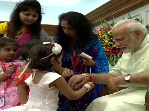 धानमंत्री मोदी ने बच्चों के साथ मनाया राखी का त्योहार