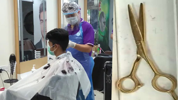 लॉकडाउन में सैलून खुलने की खुशी, नाई ने सोने की कैंची से काटे ग्राहक के बाल