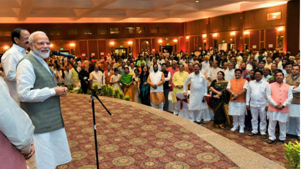 इस डिनर पार्टी के दौरान पीएम मोदी ने नवनिर्वाचित सांसदों को बधाई दी और सांसदों को संबोधित किया। इस दौरान पीएम मोदी ने पूर्व लोकसभा अध्यक्ष सुमित्रा महाजन द्वारा निभाई गई भूमिका की सराहना की। सूत्रों ने बताया कि डिनर इसलिए आयोजित की गई ताकि प्रधानमंत्री और केंद्रीय मंत्रिपरिषद के अन्य सदस्य दोनों सदनों के सभी सांसदों से अनौपचारिक माहौल में मिल सकें। बीजेपी नेता राजीव प्रताप रूडी ने कहा कि सांसदों ने प्रधानमंत्री के साथ बहुत ही अनौपचारिक तरीके से बातचीत।