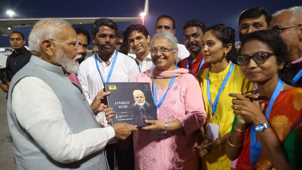 पीएम मोदी ने सोशल मीडिया पर पोस्ट करके लिखा बेंगलुरु हवाई अड्डे पर मुझे उषा कृष्णा जी से मिलने का सम्मान मिला जोकि दृष्टिबाधित हैं। उनमें भारत की प्रगति के प्रति बहुत जुनून है। मैंने उसे ब्रेल में लिखी किताब की एक प्रति भेंट की जो मुझे आज एक कार्यक्रम के दौरान मिली थी।