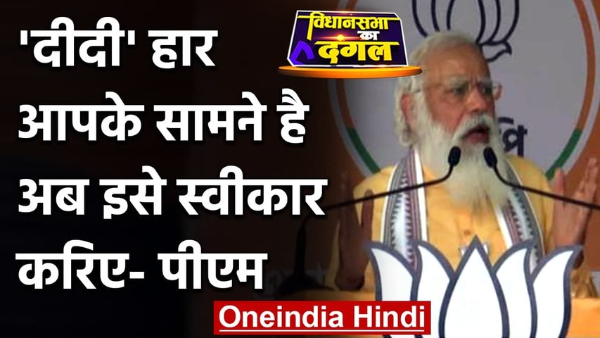 पीएम मोदी ने कहा "दीदी की पार्टी अब कह रही है कि दीदी अब वाराणसी से लोकसभा चुनाव लड़ेंगी। ये बयान आने के बाद दो बातें स्पष्ट हो जाती हैं। एक तो दीदी ने बंगाल में अपनी पराजय स्वीकार कर ली है। दूसरी बात दीदी अब बंगाल के बाहर अपने लिए जगह तलाश करने में जुट गई हैं।"