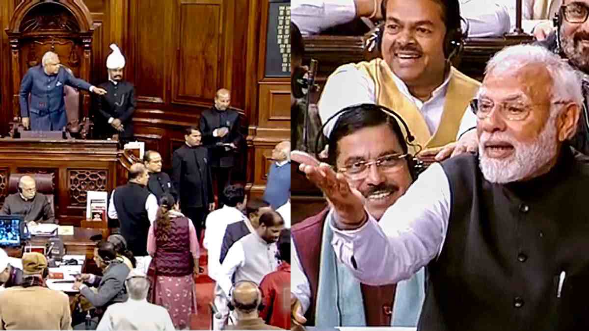 विपक्ष के नारेबाजी के बीच पीएम मोदी का जवाब