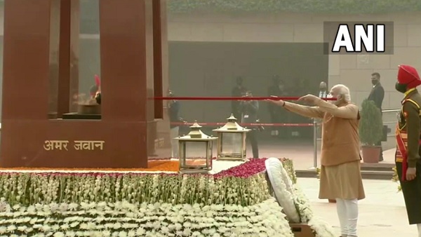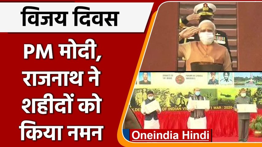 नई दिल्ली, 16 दिसंबर: प्रधानमंत्री नरेंद्र मोदी ने विजय दिवस की 50वीं वर्षगांठ के अवसर पर गुरुवार को दिल्ली में राष्ट्रीय युद्ध स्मारक पर एक श्रद्धांजलि समारोह में भाग लिया। विजय दिवस 1971 के युद्ध में पाकिस्तान पर भारत की जीत की याद दिलाता है। पीएम नरेंद्र मोदी ने कहा, 50वें विजय दिवस के मौके पर मैं मुक्तिजोद्धों, वीरांगनाओं और भारतीय सशस्त्र बलों के वीरों द्वारा महान वीरता और बलिदान को याद करता हूं। हमने साथ मिलकर दमनकारी ताकतों से लड़ाई लड़ी और उन्हें हराया। ढाका में राष्ट्रपति की उपस्थिति प्रत्येक भारतीय के लिए विशेष महत्व रखती है।''