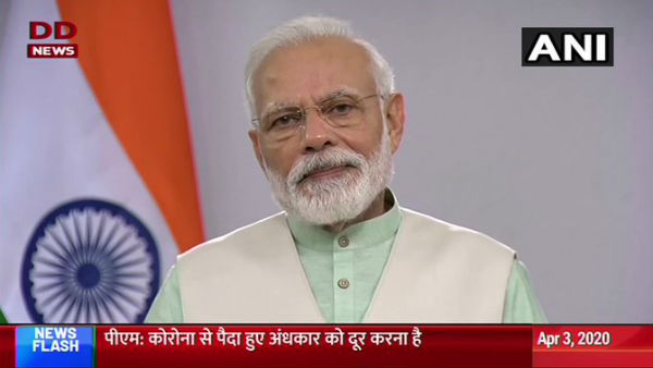 पीएम मोदी ने देशवासियों से अपील की है कि पांच अप्रैल को रात नौ बजे नौ मिनट के लिए सभी लोग अपने घरों की बिजली को बंद कर दें। इसकी जगह वह सिर्फ एक मोमबत्ती, दीपक या फिर मोबाइल की फ्लैश लाइट को ही ऑन करें। पीएम मोदी के मुताबिक ऐसा करना कोरोना वायरस के खिलाफ देशवासियों की तरफ से चल रहे युद्ध का प्रतीक होगा। पीएम मोदी ने कहा, 'उस प्रकाश में, उस रोशनी में, उस उजाले में, हम अपने मन में ये संकल्प करें कि हम अकेले नहीं हैं, कोई भी अकेला नहीं है। 130 करोड़ देशवासी, एक ही संकल्प के साथ कृतसंकल्प हैं।'