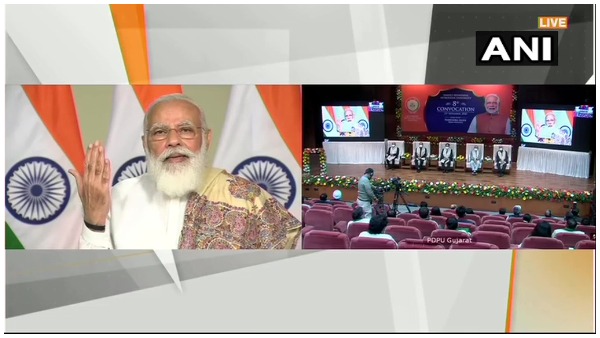 पेट्रोलियम यूनिवर्सिटी के दीक्षांत समारोह में पीएम नरेंद्र मोदी ने कहा, आज आप ऐसे समय में इंडस्ट्री में कदम रख रहे हैं, जब महामारी के चलते पूरी दुनिया के उर्जा क्षेत्र में भी बड़े बदलाव हो रहे हैं।