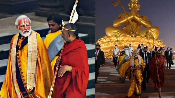 नई दिल्ली। शनिवार को प्रधानमंत्री नरेंद्र मोदी ने हैदराबाद में 11वीं सदी के भक्ति संत श्री रामानुजाचार्य की स्मृति में तैयार किये गए स्टैच्यू ऑफ इक्वलिटी का उद्घाटन किया था। इस दौरान प्रधानमंत्री धार्मिक पोशाक पहने हुए और माथे पर चंदन लगाए हुए नजर आए। इस पोशाक में प्रधानमंत्री नरेंद्र मोदी की तस्वीर देखते ही देखते सोशल मीडिया पर वायरल हो गई। ट्वीटर पर MyPM ट्रेंड करने लगा। इस तस्वीर को सबसे पहले भाजपा के युवा सांसद तेजस्वी सूर्या ने ट्वीट किया- मेरे प्रधानमंत्री