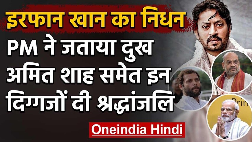 प्रधानमंत्री ने ट्वीट में कहा, 'इरफान खान का निधन सिनेमा और रंगमंच की दुनिया के लिए एक क्षति है। उन्हें हमेशा उनकी वर्सटाइल परफॉर्मेंस के लिए याद किया जाएगा। उनके परिवार, दोस्तों और प्रशंसकों के प्रति मेरी संवेदनाएं। भगवान उनकी आत्मा को शांति दे।'