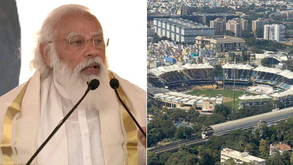 चेन्नई पहुंचे पीएम मोदी ने हेलिकॉप्टर से खींची भारत-इंग्लैंड टेस्ट की तस्वीर, ट्वीट कर कही ये बात चेन्नई में स्टेडियम के ऊपर से गुजर पीएम मोदी का हेलिकॉप्टर तो खींची भारत-इंग्लैंड टेस्ट की तस्वीर, ट्वीट कर कही ये बात