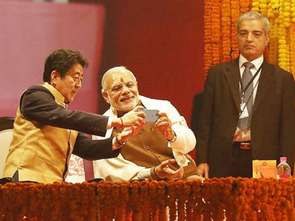 गंगा आरती के दौरान आबे ने अपना कैमरा निकाला और तस्वीरें ली।
