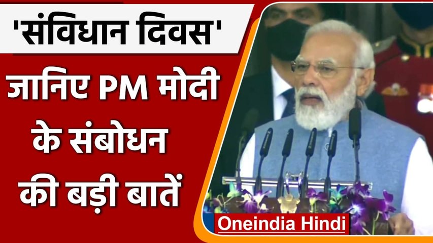 - संविधान दिवस पर बोलते हुए पीएम मोदी ने कहा, आज का दिवस इस सदन को प्रणाम करने का है। इसी पवित्र जगह पर महीनों तक भारत के एक्टिविस्टों ने देश के उज्जवल भविष्य के लिए व्यवस्थाओं को निर्धारित करने के लिए मंथन किया था और संविधान रुपी अमृत हमें प्राप्त हुआ।