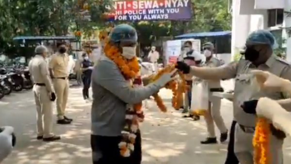 नई दिल्ली। कोविड-19 के खिलाफ लड़ाई में देश के कोरोना योद्धा भी महामारी की चपेट में आ रहे हैं। लॉकडाउन के बीच भी पुलिसकर्मी, मेडिकल स्टाफ, सफाईकर्मी सहित हर कोई अपनी जान जोखिम में डालकर अपनी जिम्मेदारी पूरी इमानदारी से निभा रहा है। इसी बीच कई पुलिसकर्मियों के भी कोरोना पॉजिटिव पाए जाने की खबरें सामने आई हैं। दिल्ली के ओखला मंडी में तैनात अमर कॉलोनी थाने के 5 पुलिसकर्मी कोरोना पॉजिटिव हुए थे इनमें एक कांस्टेबल प्रवीण अब ठीक होकर अपने काम पर वापस लौट चुके हैं। जब ठीक होकर वापस लौटे तो साथी पुलिसकर्मियों ने उनका जबरदस्त स्वागत किया।