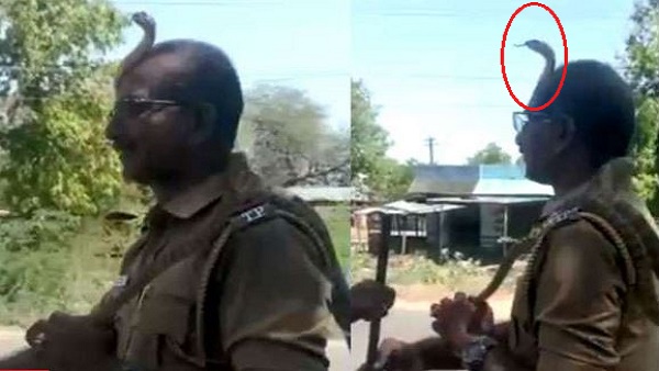 पुलिस वाले के सिर पर जा बैठा सांप
