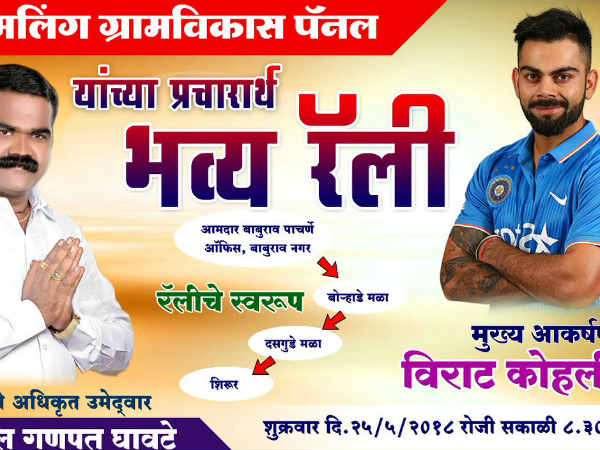 रामलिंग ग्राम पंचायत से सरपंच का चुनाव लड़ रहे विट्ठल गणपत घावते ने पूरे इलाके में खुद का कोहली के साथ होर्डिंग लगवा दिया। लेकिन क्या गणपत ने सच में अपने कार्यक्रम में विराट कोहली को बुलााय, इसका जवाब सुनकर आप चौंक जाएंगे। दरअसल लोगों को इस बात का यकीन था कि इस कार्यक्रम में कोहली खुद शिरकत करेंगे, लेकिन कोहली की जगह जब उनका हमशक्ल वहां पहुंचा तो लोगों की उम्मीदों पर पानी फिर गया।