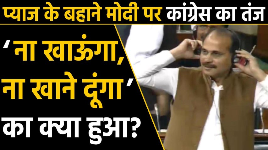 लोकसभा में मंगलवार को प्याज की कीमतों पर बवाल हो गया। कांग्रेस की ओर से सदन में प्याज की बढ़ी कीमतों का मुद्दा उठाया गया, इस दौरान कांग्रेस नेता अधीर रंजन चौधरी ने प्रधानमंत्री नरेंद्र मोदी पर तंज कसा और उनके ही नारे का इस्तेमाल उनपर कर दिया। अधीर रंजन चौधरी ने कहा, 'बाजार में आग लग गया है सर, सभी चीजों का दाम बढ़ रहा है। हिंदुस्तान की सरकार जो प्याज आयात होती है, वह बाजार में 140 रुपये प्रति किलो के हिसाब से बिक रहा है।' इसी दौरान कांग्रेस नेता ने प्रधानमंत्री पर तंज कसते हुए कहा कि हमारे प्रधानमंत्री जी कहते हैं ना खुद खाउंगा ना खाने दूंगा...। बस, इतना कहने के बाद ही भारतीय जनता पार्टी के सांसदों की तरफ से हंगामा शुरू कर दिया गया।