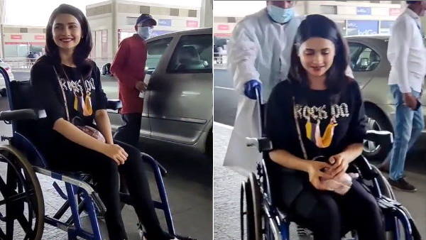 प्राची देसाई व्हीलचेयर पर बैठकर मुंबई एयरपोर्ट से आईं बाहर, वीडियो वायरल