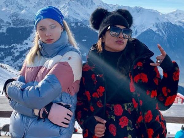 परिवार और दोस्तों के साथ प्रियंका ने की स्कीइंग