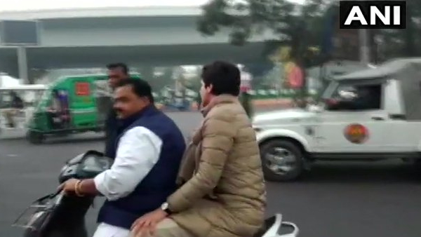 Lucknow: The Congress party worker on whose two wheeler Priyanka Gandhi Vadra travelled while going to meet family members of Former IPS officer SR Darapuri yesterday, has been challaned with a penalty of Rs 6100 for not wearing helmets. (File pic) pic.twitter.com/LArpmx31UJ