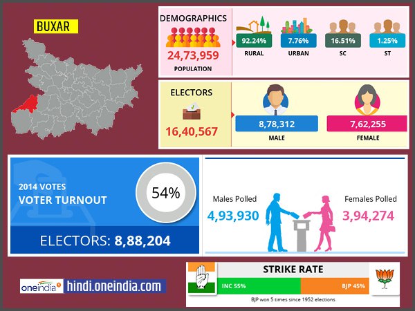 बक्सर को सवर्ण बाहुल्य सीट कहा जाता है और ब्राह्मण वोटरों की अच्छी संख्या है।