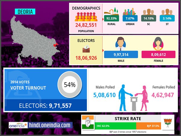 साल 2014 में यहां पर 1680992 मतदाताओं ने हिस्सा लिया, जिसमें 55 प्रतिशत पुरुष और 44 प्रतिशत महिलाएं शामिल थीं। उस साल यहां कांग्रेस दूसरे, BSP तीसरे और SP चौथे नंबर पर रही थी, डुमरियागंज में हिंदुओं की संख्या 82 प्रतिशत और मुस्लिमों की संख्या 17 प्रतिशत है, ये हिंदू बाहुल्य इलाका है, जिसका फायदा साल 2014 के चुनाव में भाजपा को मिला था और वो आगे भी इसका फायदा उठाना चाहेगी। कुशीनगर में आज भी गन्ना किसानों की स्थिति संतोषजनक नहीं है, यहां मूलभूत साधनों की भी कमी है, विकास की गति काफी धीमी है और आज भी यहां के युवागण शिक्षा और रोजगार के लिए संघर्ष कर रहे हैं।