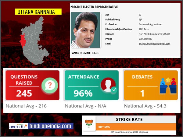 अब अगर में संसद में उत्तर कन्नड़ के सांसद के प्रदर्शन की बात की जाए तो वह बहुत ही शानदार रहा है। उत्तर कन्नड़ के सांसद हेगड़ ने संसद में 96 फीसदी हाजिरी लगाई हैं। वहीं, संसद में 245 सवाल पूछ चुके हैं। हालांकि, बीजेपी नेता हेगडे ने सिर्फ एक डिबेट में हिस्सा लिया हैं। इस सीट पर अगर वोटिंग टर्नआउट की बात करे तो 2014 में 69 फीसदी लोगों ने वोट किया था। पिछले लोकसभा चुनाव में उत्तर कन्नड़ सीट पर कुल 10,01,038 लोगों ने वोट किया था, जिसमें से 4,79,497 महिलाओं और 5,21,541 पुरुषों ने वोट किया था।