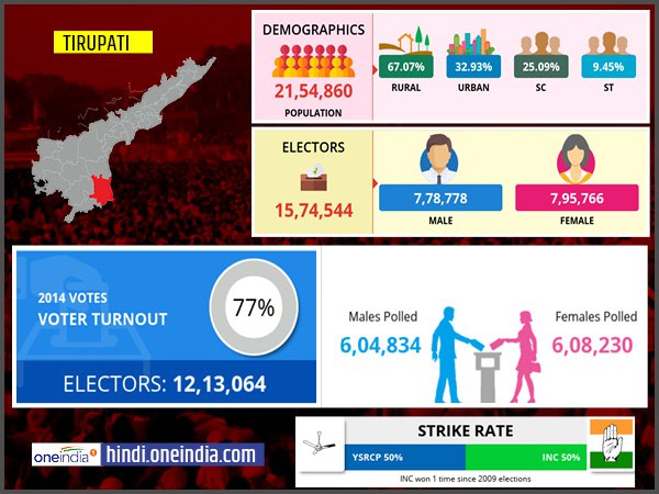 साल 2014 में तिरुपति लोकसभा सीट पर 77 फीसदी मतदान हुआ।