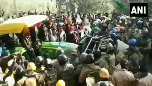 बैरिकेडिंग तोड़ते हुए आगे बढ़े किसान