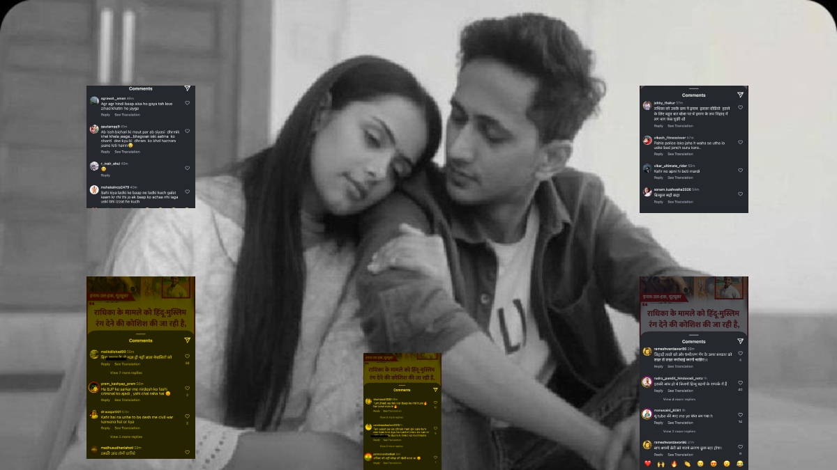 jekky_thakur नाम के एक यूजर ने इसे लव-जिहाद का रंग देने की कोशिश करते हुए कहा कि राधिका लव-जिहाद के चक्कर में फंस गई थी, इसलिए उसक पिता ने उसे मार दिया। vikar_ultimate_rider नाम के एक और यूजर ने राधिका के पिता दीपक यादव को काफिर बताते हुए कहा- काफिर ने अपनी बेटी मार दी। जिसे sonam.kushwaha2026 नाम की एक संभावित महिला यूजर ने सही भी बताया।