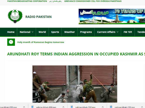 पाकिस्तान सरकार के रेडियो पाकिस्तान में अरुंधति रॉय का विवादित इंटरव्यू