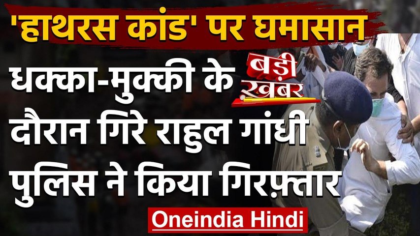 नोएडा। हाथरस गैंगरेप पीड़िता के परिजनों से मिलने जा रहे कांग्रेस के पूर्व अध्यक्ष राहुल गांधी की यूपी पुलिस के साथ झड़प हुई है। हाथरस जा रहे राहुल गांधी को यूपी पुलिस ने हिरासत में लिया गया है। यमुना एक्प्रेस वे पर राहुल गांधी और प्रियंका गांधी समेत कई कांग्रेस कार्यकर्ताओं को पुलिस की गाड़ी में बिठाकर बुद्ध सर्किट के गेस्ट हाउस लेकर गई हैं। वहीं कांग्रेस के कार्यकर्ताओं पर पुलिस ने लाठीचार्ज किया है।