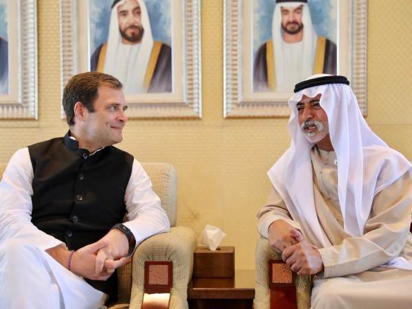 यूएई में राहुल गांधी, शेख नाहयान बिन मुबारक से की मुलाकात