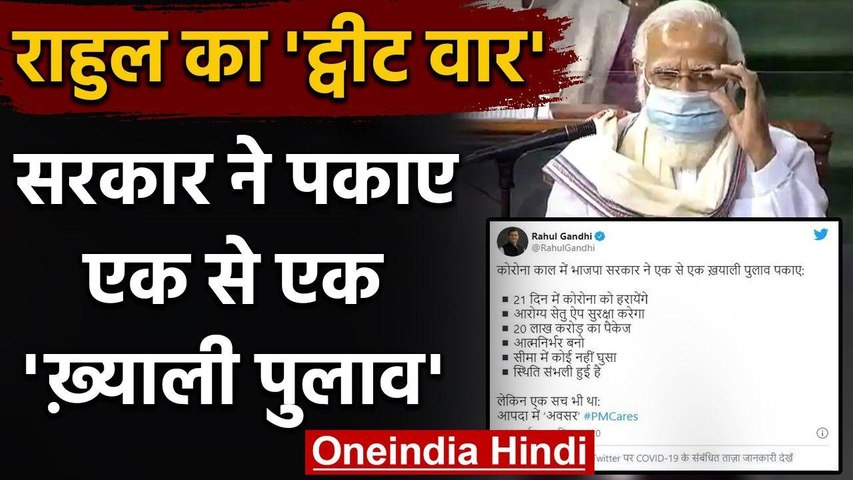 अपने नए ट्वीट में पीएम मोदी को निशाने पर लेते हुए राहुल गांधी ने लिखा, 'कोरोना काल में भाजपा सरकार ने एक से एक खयाली पुलाव पकाए। 21 दिन में कोरोना को हराएंगे। आरोग्य सेतु ऐप सुरक्षा करेगा। 20 लाख करोड़ का पैकेज। आत्मनिर्भर बनो। सीमा में कोई नहीं घुसा। स्थिति संभली हुई है। लेकिन एक सच भी था- आपदा में ‘अवसर' #PMCares...।