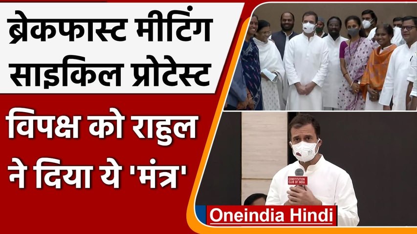नई दिल्ली, 3 अगस्त: कांग्रेस सांसद राहुल गांधी पिछले एक हफ्ते से नरेंद्र मोदी सरकार के खिलाफ विपक्ष को एकजुट करने की कोशिश कर रहे हैं। वह दो-दो बार कुछ विपक्षी नेताओं और सांसदों के साथ बैठक कर चुके हैं। आज विपक्ष के कुछ सांसदों के साथ नाश्ता करने के साथ ही वह संसद भवन तक साइकिल मार्च भी निकाल चुके हैं। न्यूज चैनलों में कवरेज और अखबारों में तस्वीरें छपवाने के लिए तो यह कवायद तो अच्छी लग रही है, लेकिन क्या राहुल की यह विपक्षी एकता प्रधानमंत्री नरेंद्र मोदी के लिए चुनौती है ?