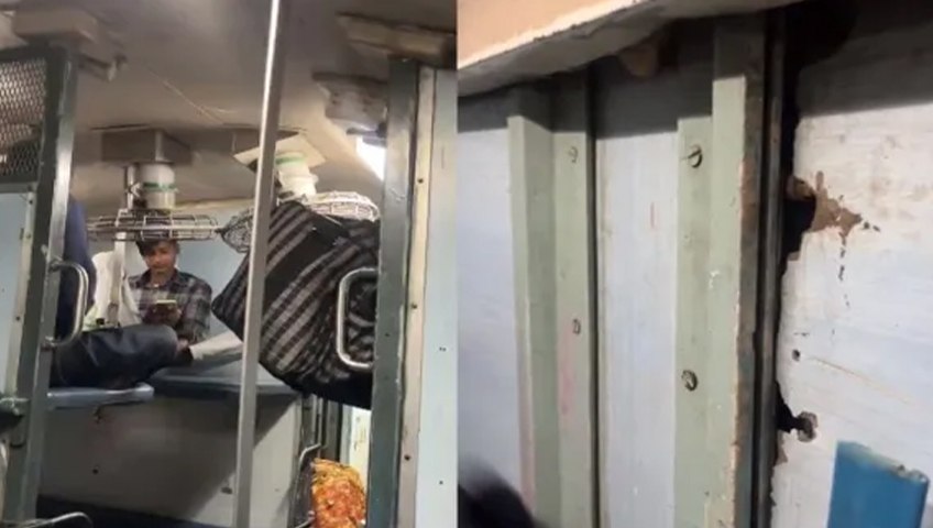 एक्स यूजर राहुल ने वीडियो शेयर करते हुए दावा किया कि ट्रेन की हालत इतनी खराब थी कि सारे नट-बोल्ट ढीले थे और दीवारें टूट गईं, जिनके हवा अंदर की तरफ आ रही थी।